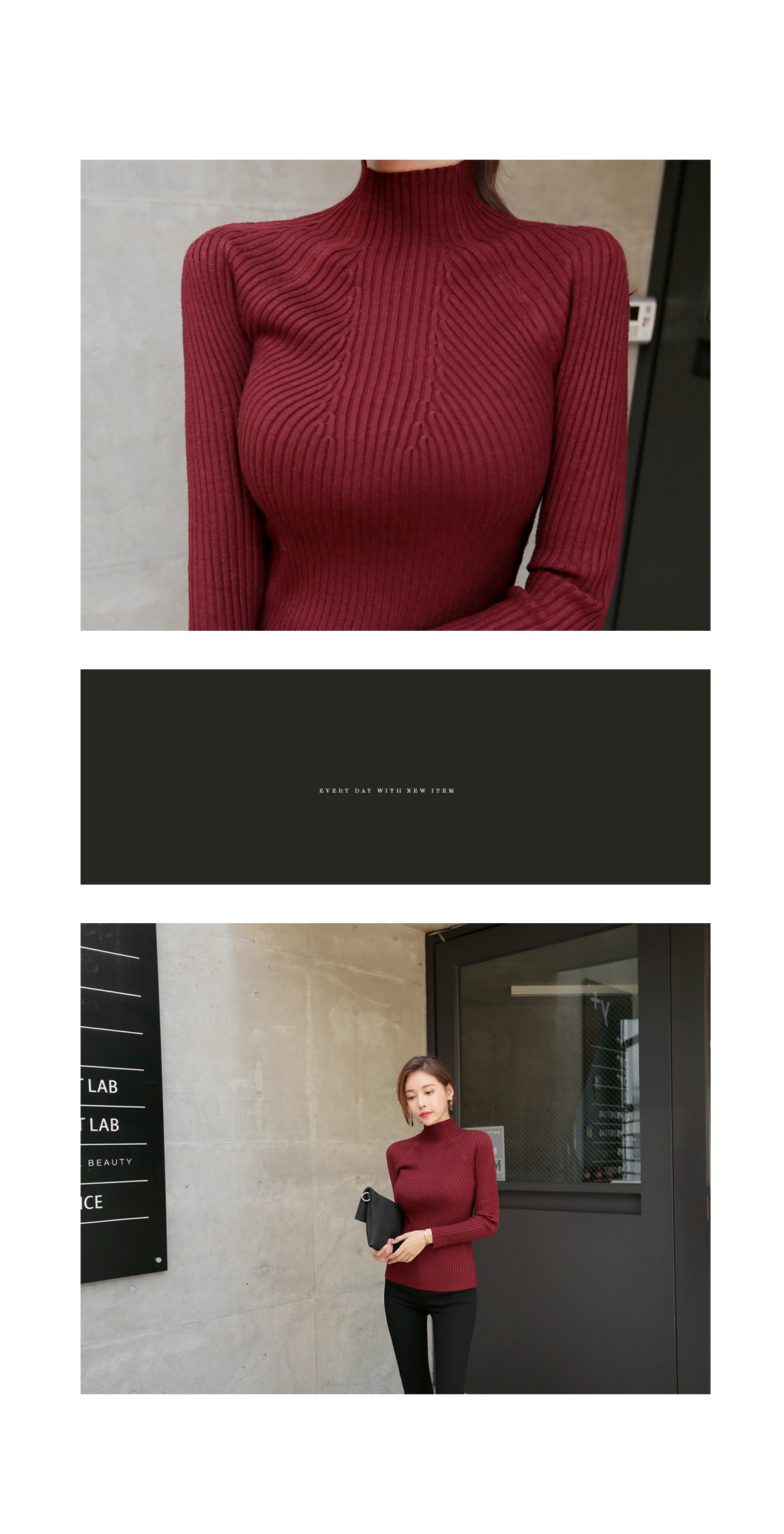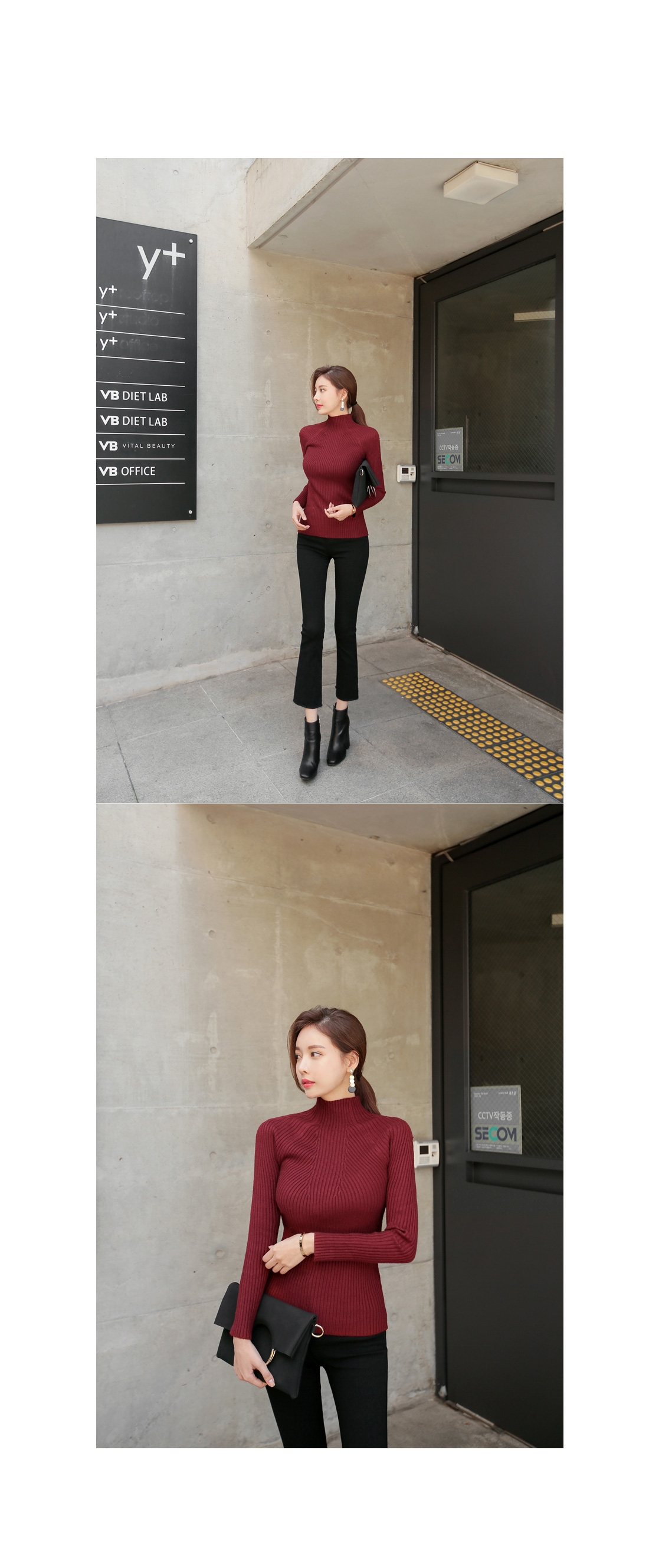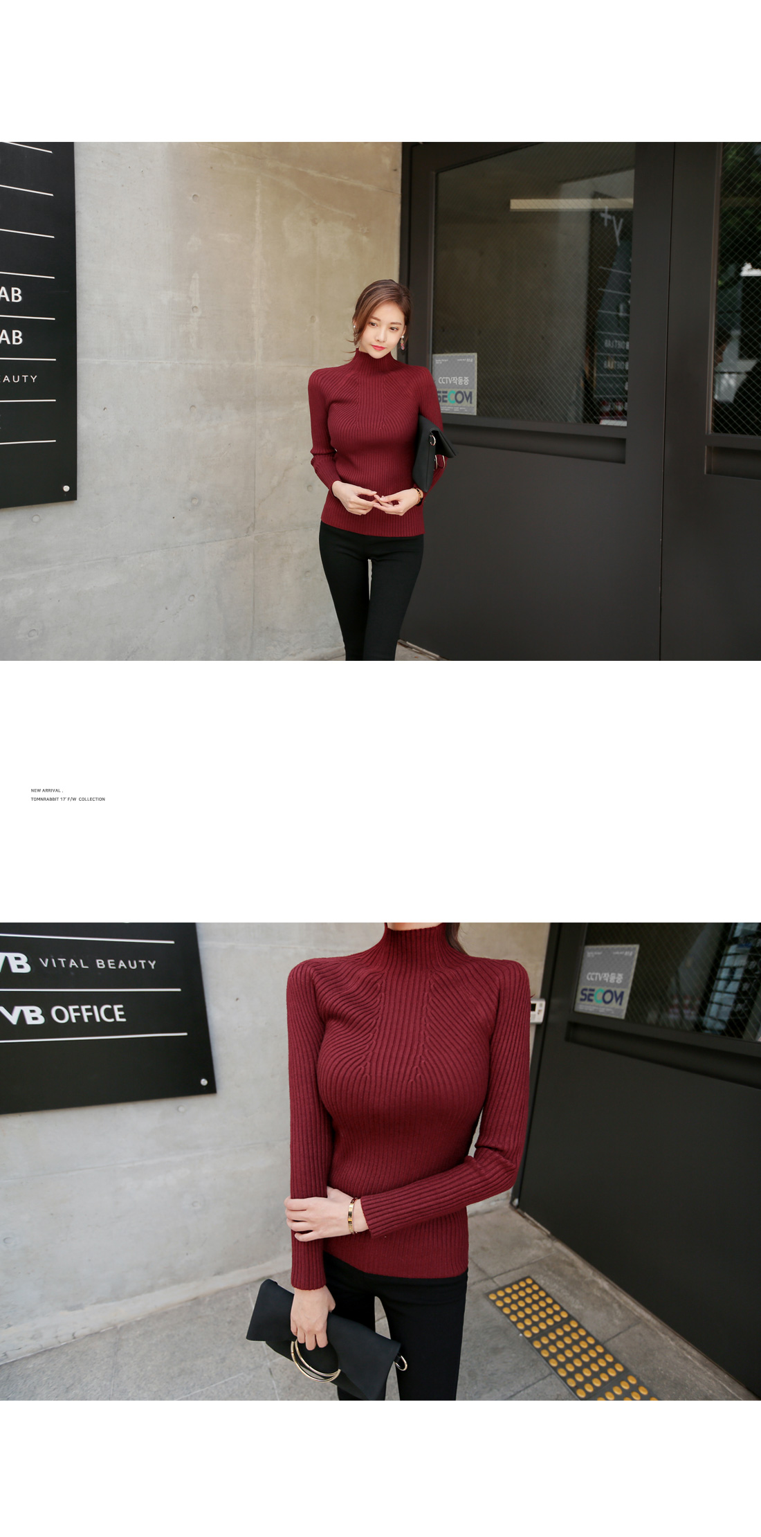 슬림한 핏감의 골지니트 반폴라 티셔츠 소개 해 드려요.
