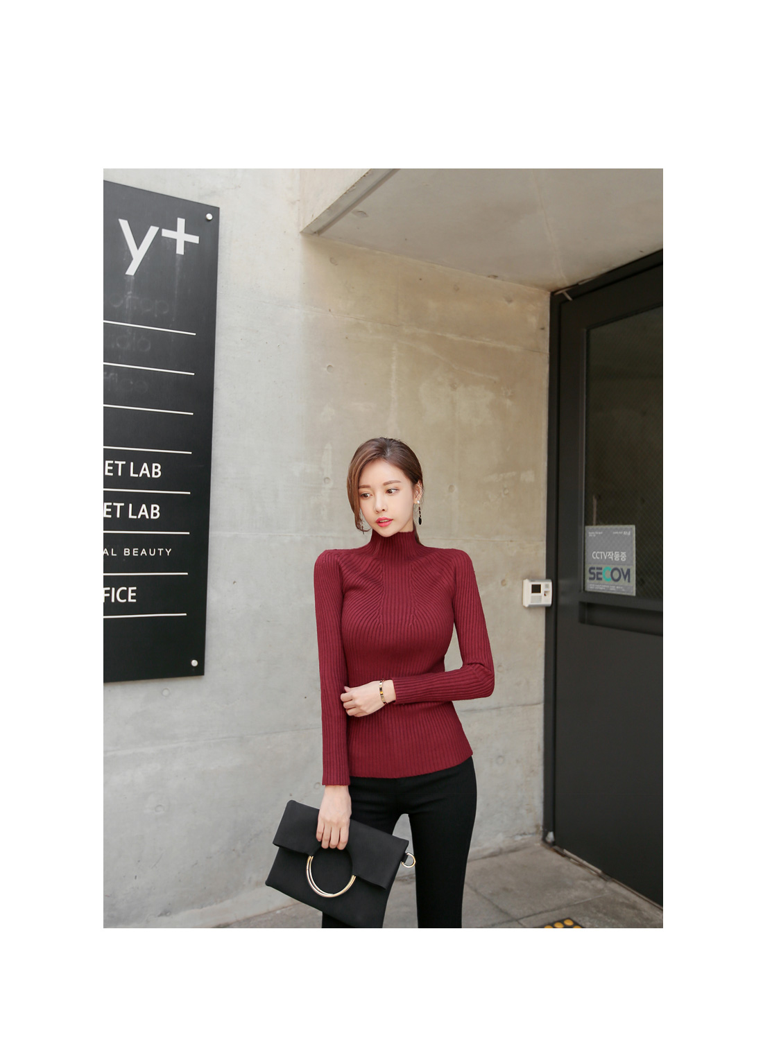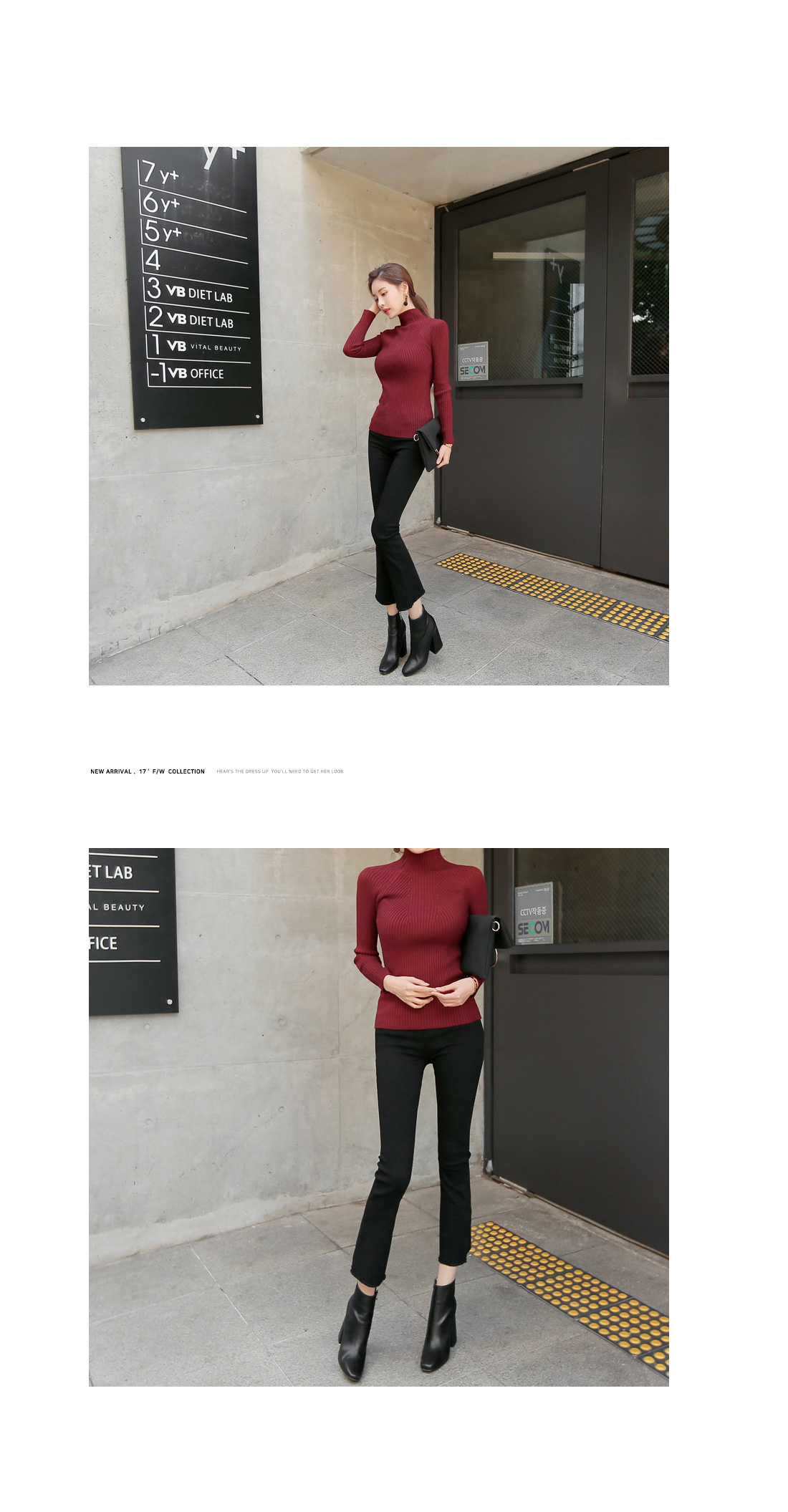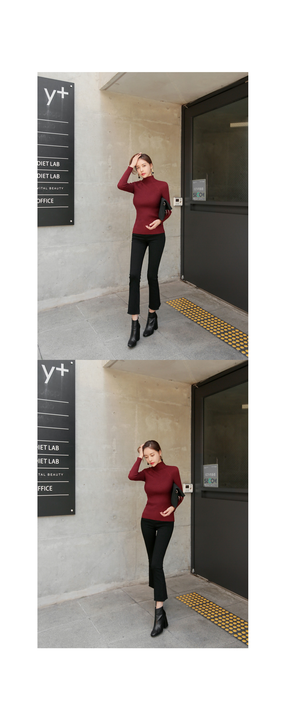 슬림한 핏감의 골지니트 반폴라 티셔츠 소개 해 드려요.