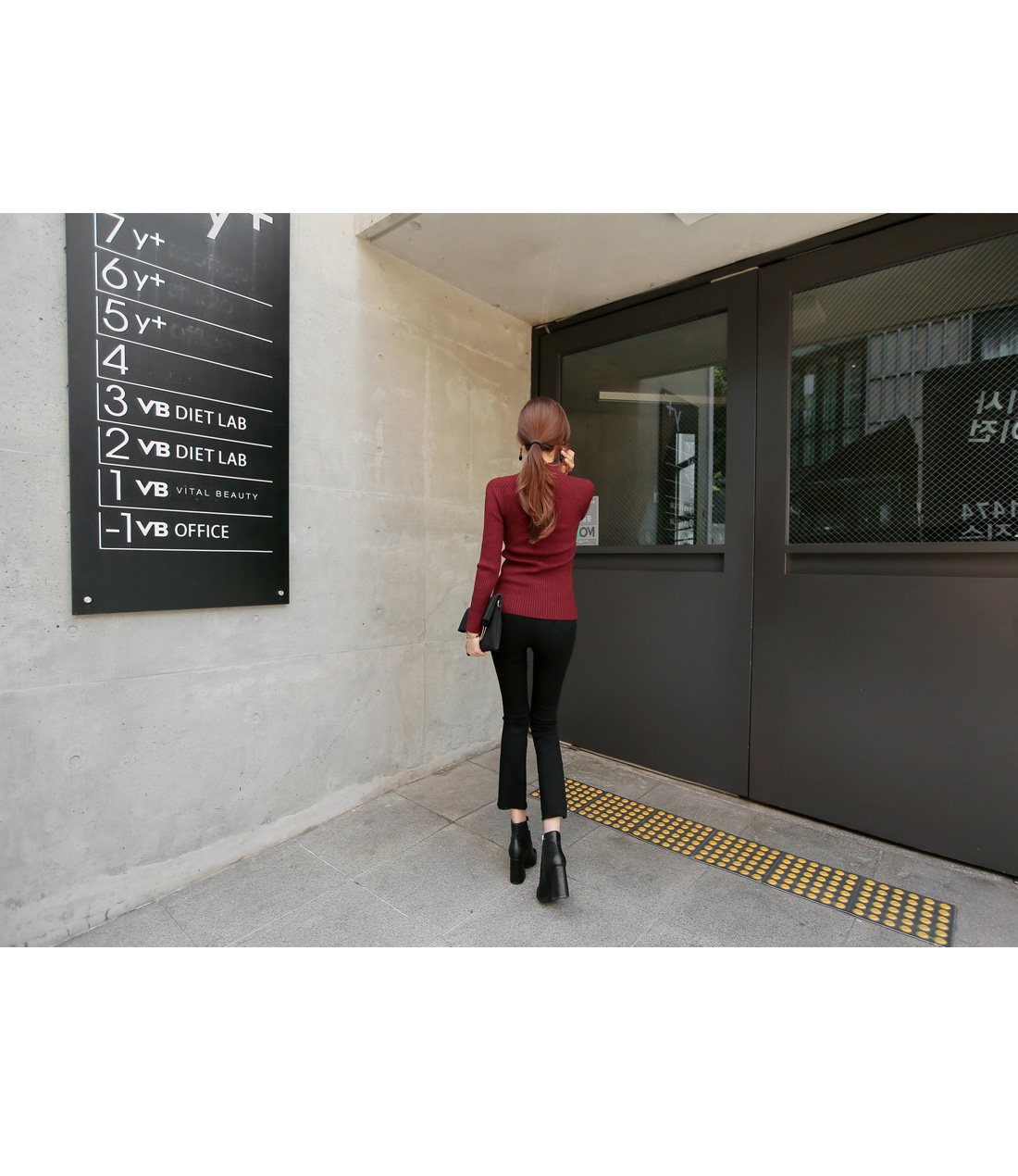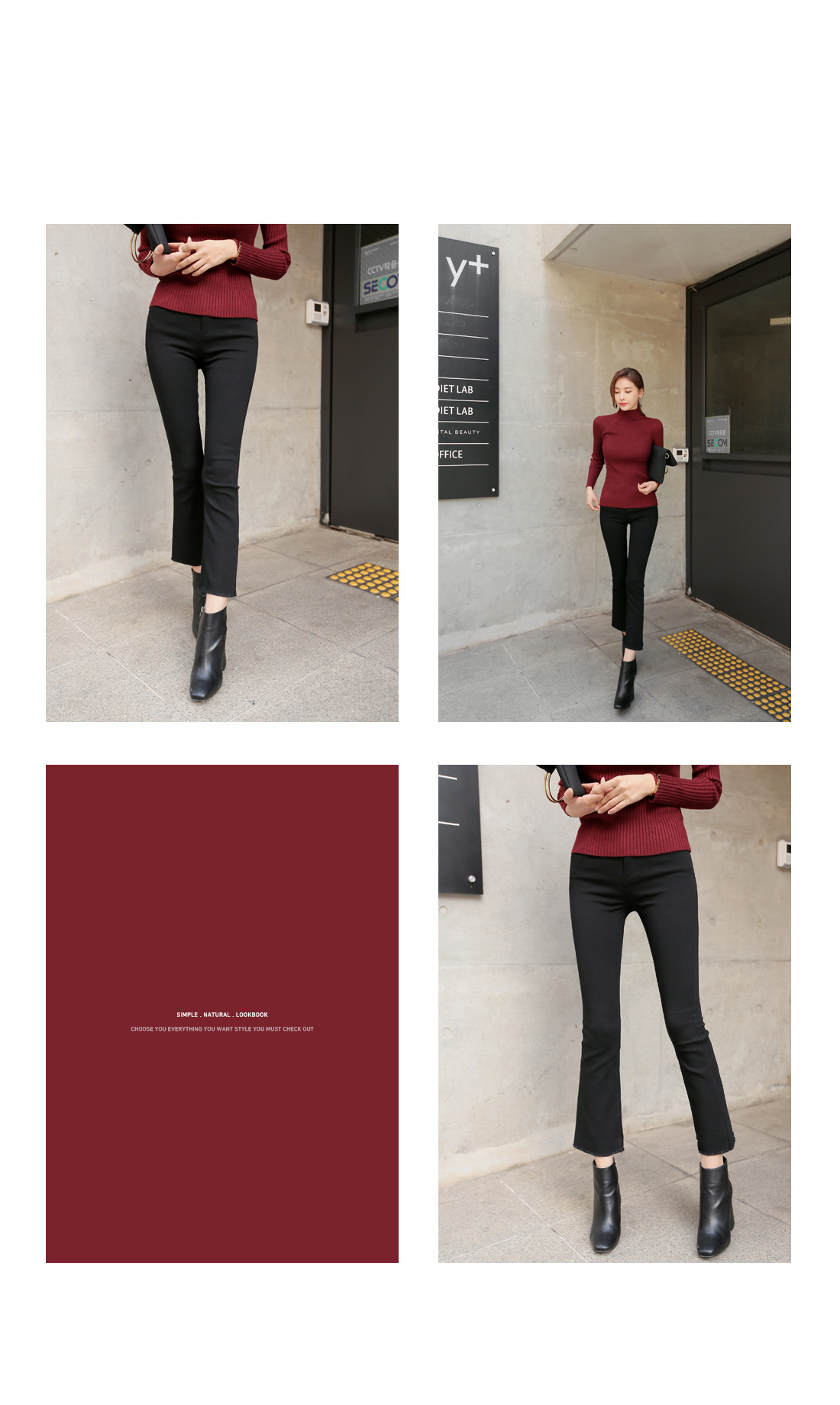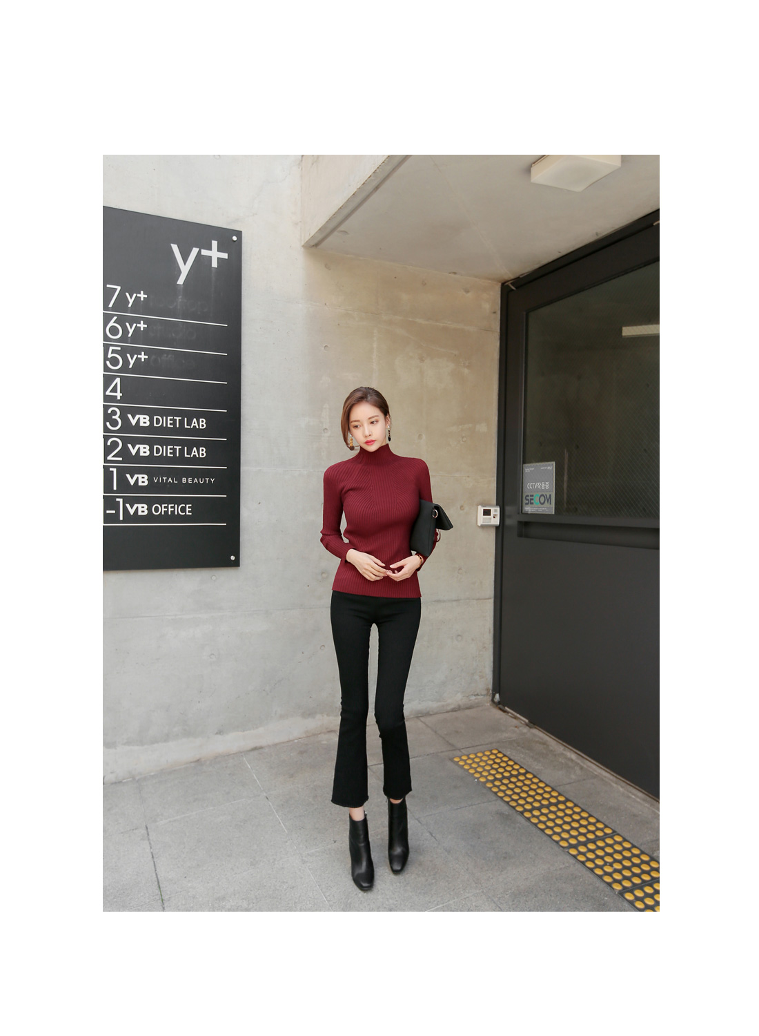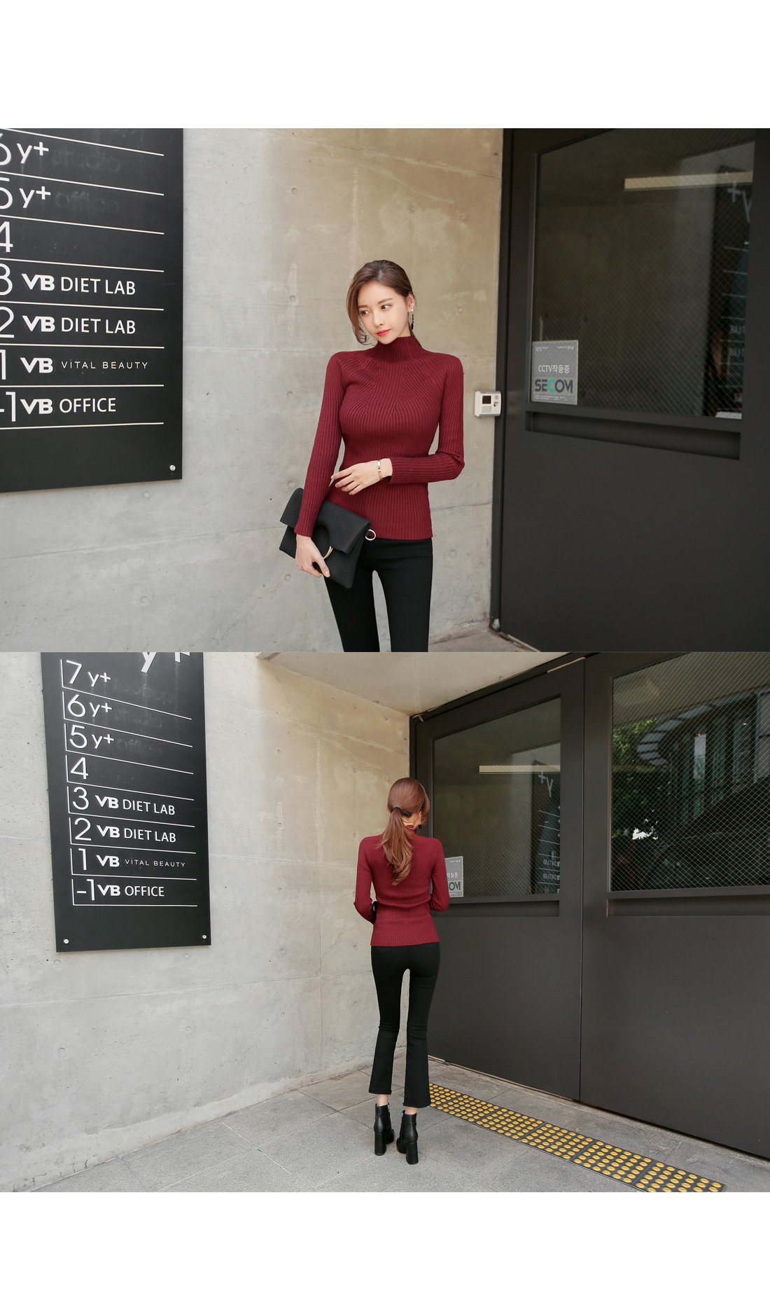 컬러별로 소장해도 아깝지않은 니트 탑으로 추천해 드릴게요! 와인,아이보리,그레이,블랙,브라운,카키 6가지 컬러 준비 했으며, 모델이 착용한 컬러는 와인 입니다.