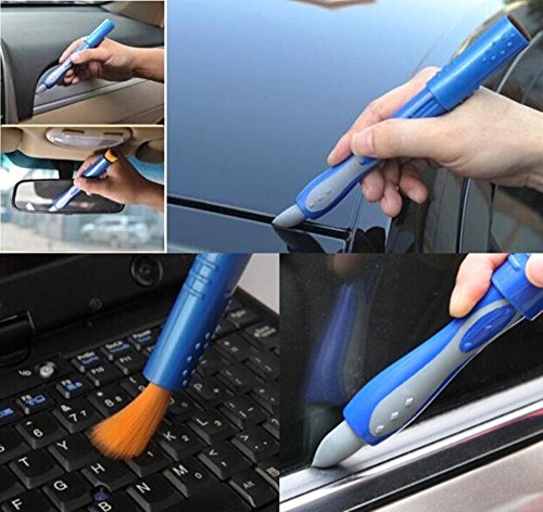 -. Feature : Double ended design retractable cleaning tool, deal with different places / Quickly clean the hard reach place, the nylon brush head can help clean dust place / Portable Mini Size: 19.5*2.2*1.7cm / Color: blue / Great cleaning accessory for car air outlet, air condition, keyboard, fan, blind window, etc