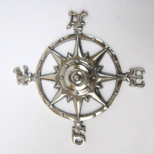 This striking wall hanging is in the traditional compass rose pattern design at 12" Across in Aluminum metal with an antique finish. It would be a wonderful complement to any outdoor or nautical themed decor. Item Specification: - Wall Hanging in Lightweight
