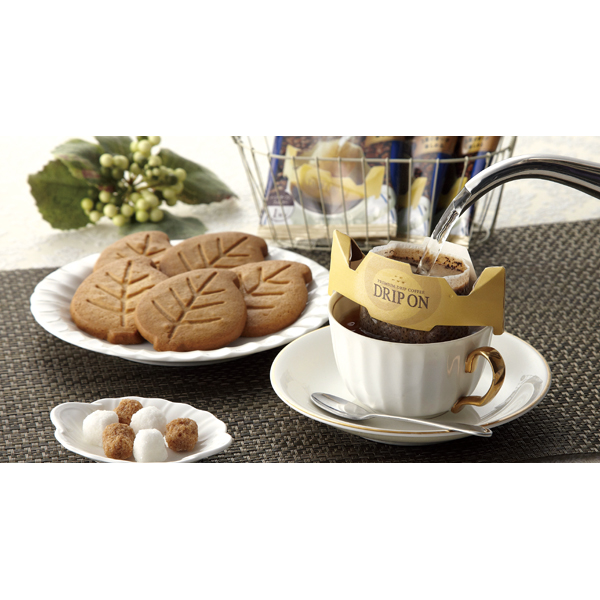●ドリップオンスペシャルブレンド8g×9、セイロンティ2g×4、カフェオレ8.1g×3、リーフクッキー(バニラ・コーヒー・キャラメル)×各1