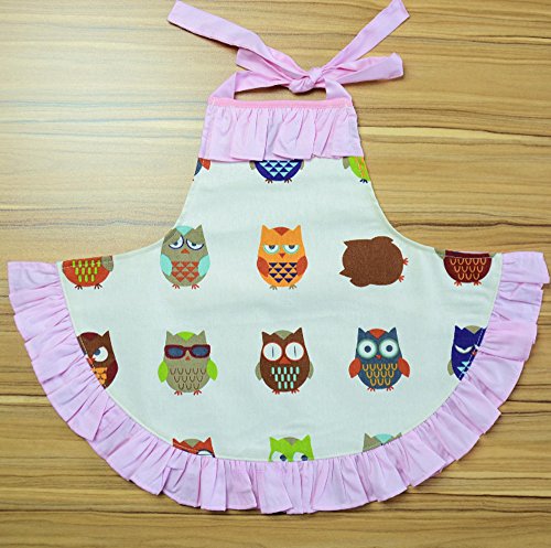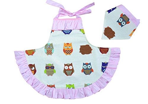 CRB Fashion Girls Children's For Toddler Kids Owl Cooking Baking Headscarf Apron 2 Piece Set (Style #1, 4T to 5T)