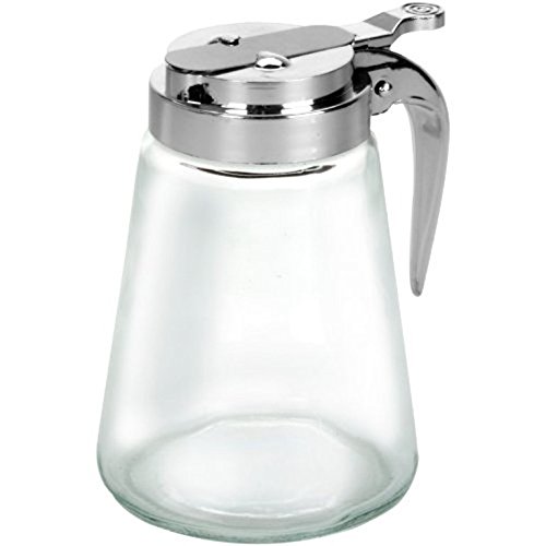 • Glass syrup pitcher with dispensing lid holds up to 8 ounces of syrup or other liquids. Easy pour spout makes it simple to pour anything without making a mess. Use as pancake syrup dispenser, agave syrup dispenser, sugar syrup dispenser, maple syrup dispenser, condensed milk dispenser and more!