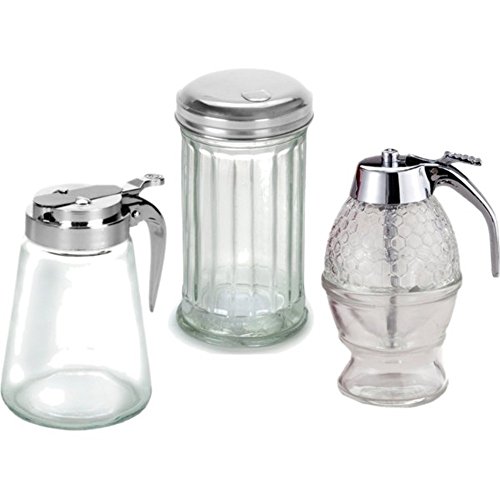 GLASS SYRUP DISPENSER, NO DRIP HONEY DISPENSER & SUGAR SHAKER WITH LID - BUNDLE OF 3