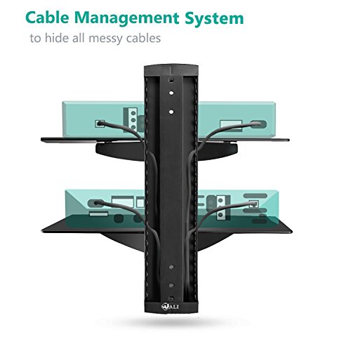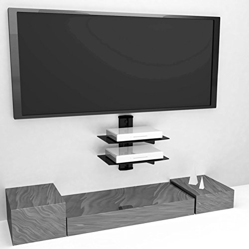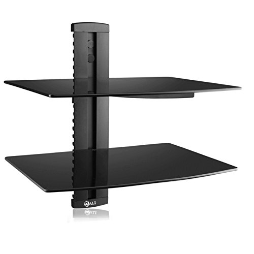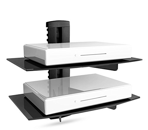 WALI Floating Shelf with Strengthened Tempered Glass for DVD Players/Cable Boxes/Games Consoles/TV Accessories, 2 Shelf, Black