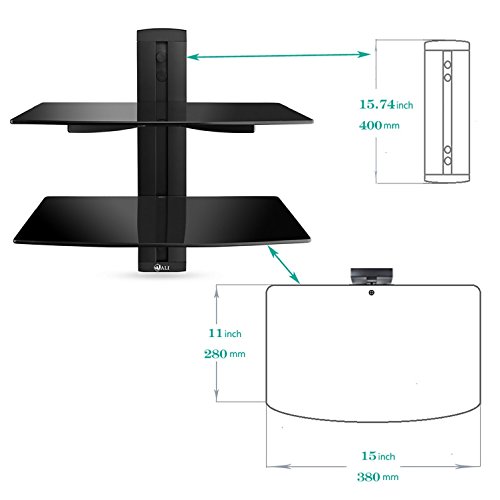 Features: Large Strengthened Tempered Glass Shelf (Each glass measures 15 inch x 11 inch x 5mm thick),supporting a maximum weight up to 8kg (17.6lbs) per shelf.