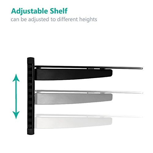 Smart Design: Elegant floating shelf (with adjustable height) to free-up floor space and enhance the look of your entertainment system.
