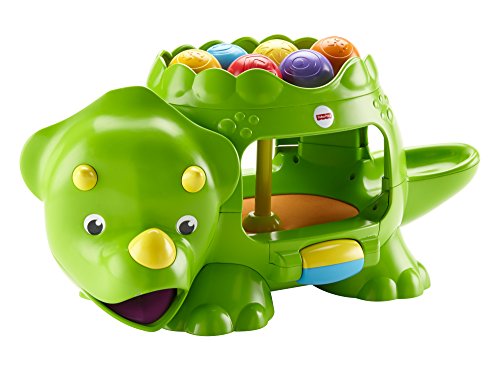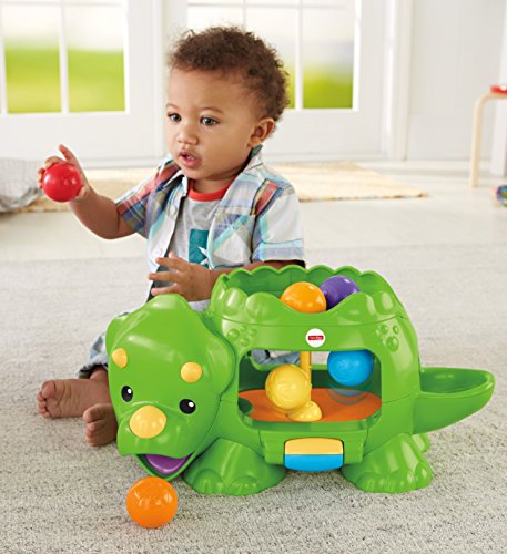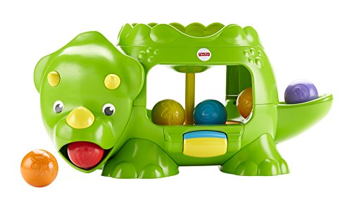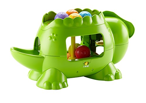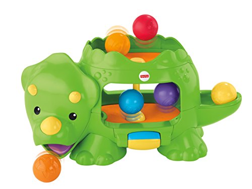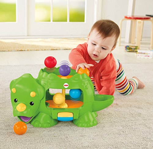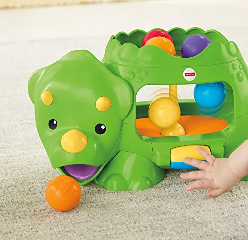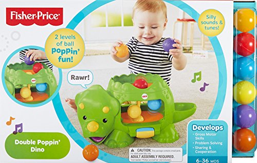 -. Feature : Bat-at roller activates 2 levels of ball poppin' action, silly sounds & tunes / Dropping the balls up top or down below makes the action happen, too! / Balls pop out of the dino's mouth, tail or belly / Crawl and chase fun for your little one! / Includes Double Poppin' Dino and 6 colorful balls