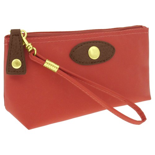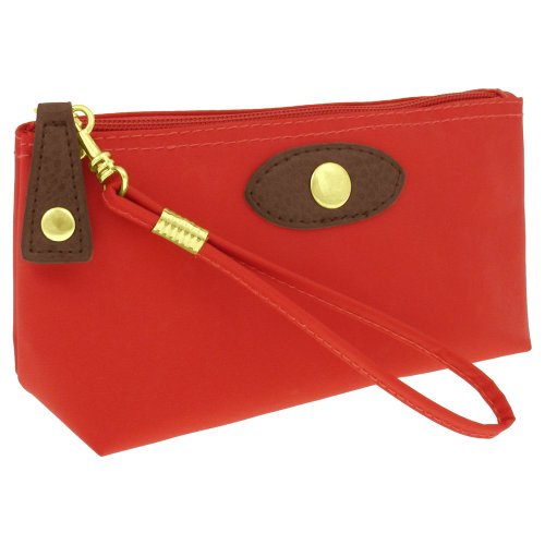 Capelli New York Nylon Wristlet With Faux Leather patch and Zipper Puller Red