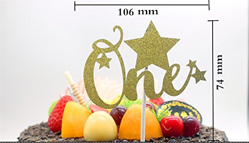 - Package includes:One “Twinkle Twinkle Little Star”+2 glittery gold star garland each with 35 pcs stars(Total 70PCS) + 1 x "One"double side gold glitter cake topper