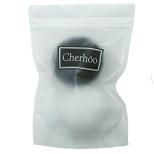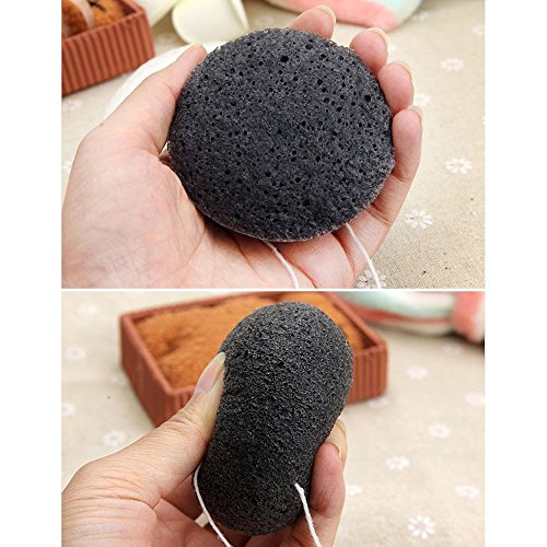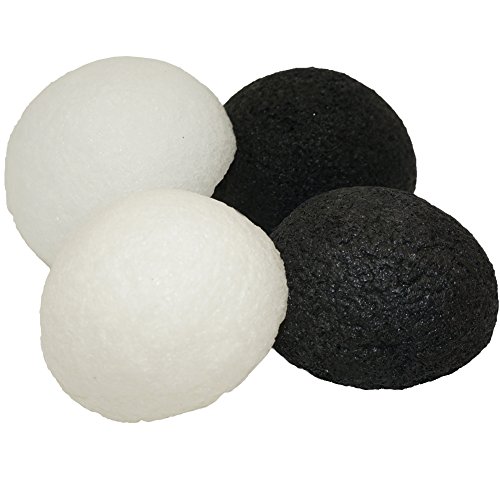 Cherhoo Konjac Facial Cleaning Sponge, Activated Bamboo Charcoal (Black) & Natural ( White) with Attached String for Hanging to Dry for Dehydrated or Sensitive Skin (4 Pack)