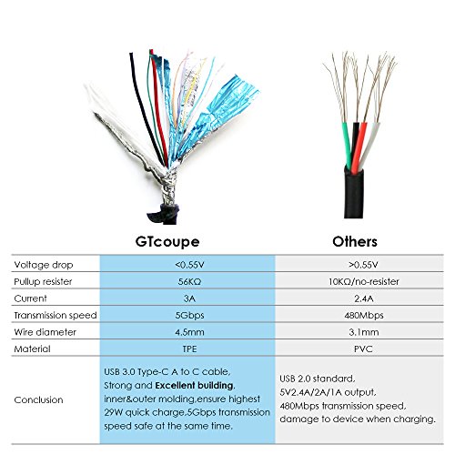 56kΩ Pull-up Resistor: GTcoupe's Type C to A USB3.0 Cable is designed to fully protect your device from damaging excessive current.
