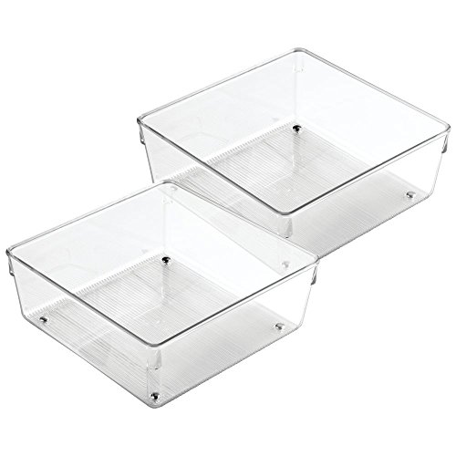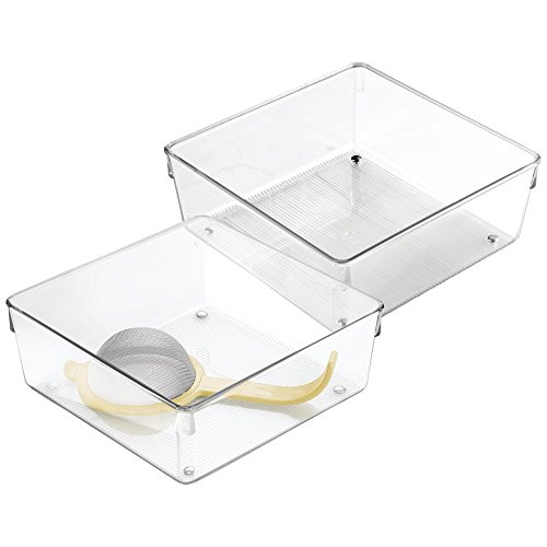 InterDesign Linus Kitchen Drawer Organizer for Silverware, Spatulas, Gadgets - Set of 2, 8" x 8" x 3", Clear