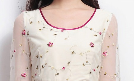 ☆これからの季節にピッタリの花柄刺繍 マキシ丈ワンピースです♪