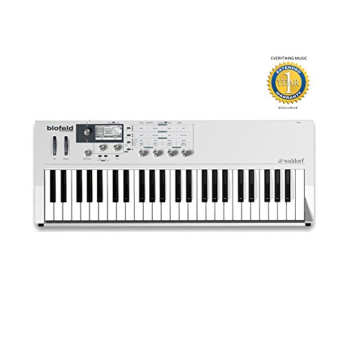 Includes 1 Year EverythingMusic Extended Warranty Free. Not only on the outside did he gain weight, also his inner qualities have seen a remarkable step-up: besides the virtual-analog synthesis and the classic wavetables it now sports a whopping 60 megabytes of sample memory. Just imagine to add a vocal-like noise spectrum to a typical Wavetable pad, spice-up a virtual-analog solo sound with a strong attack sample or just process any other sample with the countless oscillator and filter modulations. Play your sound creations on the high-quality keyboard with velocity and aftertouch. Pitchbend and modulation wheel are at your disposal and, as a matter of course, you can connect a sustain pedal. All this is packaged in a sleek metal enclosure with a big graphic display, endless stainless steel rotaries and an internal power supply. And although it comes for an unbeatable price tag, we add something very special. It comes: From Waldorf with Love! General Features up to 25 Voices 16 part multi timbral more than 1000 Sounds sturdy Metal Enclosure 7 endless stainless steel Dials 5 Buttons Graphic Display 128 x 64 pixels, b/w, white background LED MIDI LED Volume Control Power Switch Stereo Output Headphone Output MIDI In USB Connector for MIDI In / Out uses standard USB MIDI Driver provided by host computer OS Windows ME minimum, Windows XP or newer recommended Mac OS X 10.2 minimum, Mac OS X 10.3 or newer recommended External Power Supply 0 |