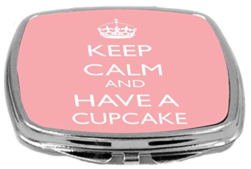Rikki Knight Compact Mirror, Keep Calm and Have a Cupcake Light Pink