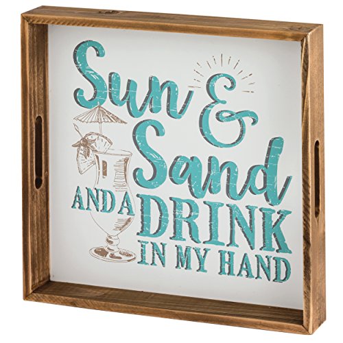Prinz 11.75 X 11.75 Inch 'Sun & sand and a Drink in My Hand' Natural Wood Tabletop Tray Plaque
