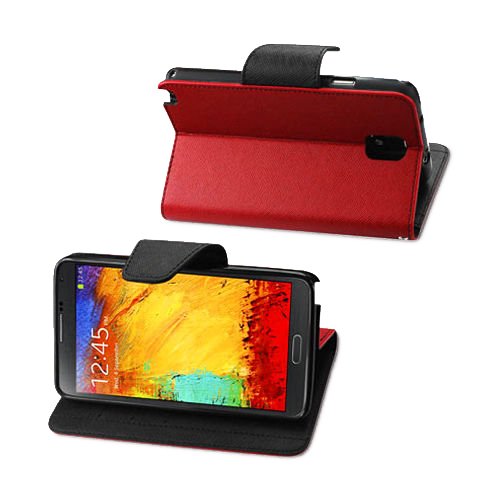 - Title : myLife Lava Red + Deep Black {Professional Design} Faux Leather (Card, Cash and ID Holder + Magnetic Closing) Slim Wallet for Galaxy Note 3 Smartphone by Samsung (External Textured Synthetic Leather with Magnetic Clip + Internal Secure Snap In Closure Hard Rubberized Bumper Holder)