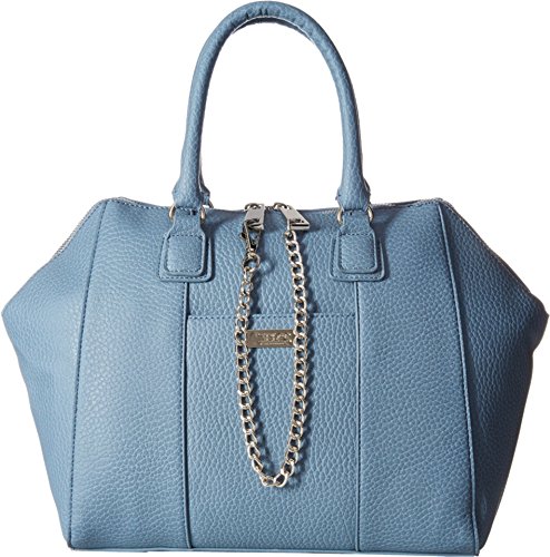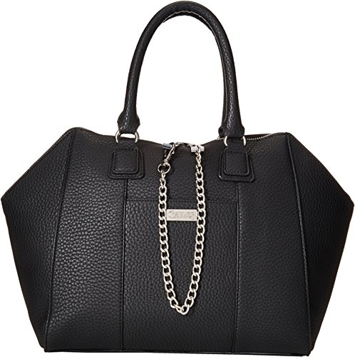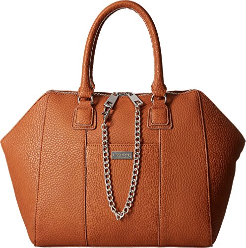 Dual rolled carry handles. Zip top closure with chain accessory. Exterior slip pocket. Flat bottom base. Interior back wall zip pocket with additional slip pockets. Imported.