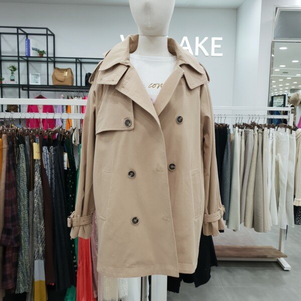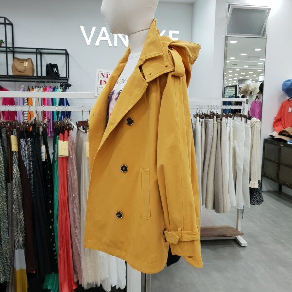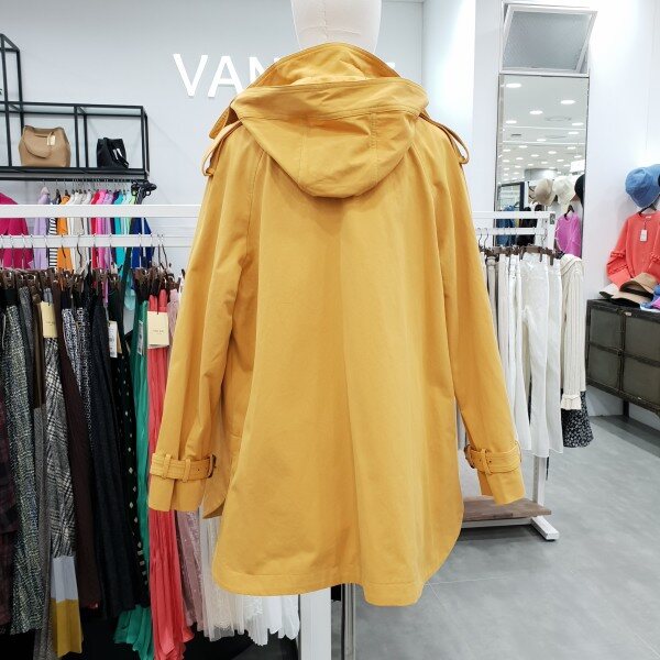 후드가 달려있어 캐주얼하고 비비드한 컬러감으로 화사하게 코디하기좋은하프기장의 면 트렌치 코트