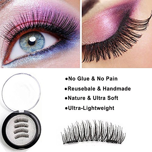 Magnetic Eyelashes Dual Magnet False Eyelashes, Ultra-thin No Glue 0.2mm False Eye Lashes 3D Natural Reusable False Magnet Eyelashes Extension Prime...