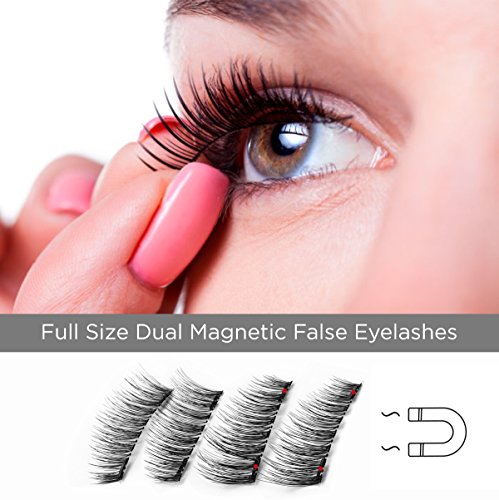Full Size Dual Magnetic False Eyelashes Set (4 pieces) - Handmade 3D Fake Magnetic Lashes Extension - Best Reusable and Easy to Apply Ultra Thin Dual...