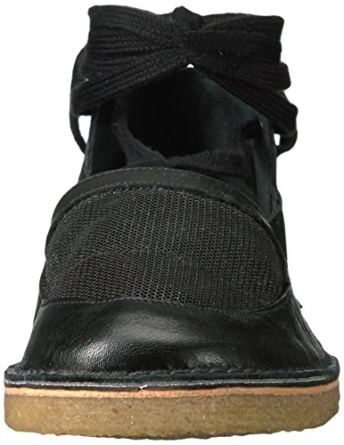 Product DescriptionClosed toe slip-on in a combination of cadet blue and olive leather. round toe and mesh panel at top of foot. laces at ankle. natural gum sole.0