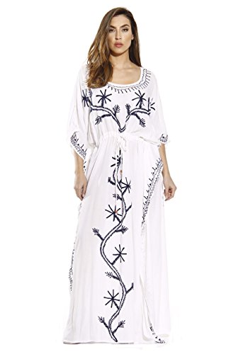 LOVELY FIT: Our ladies kaftans are cinched at the waist for a shapely silhouette and have a functional drawstring to give you a great fit. Whether you're petite, plus sized, or somewhere in between, you'll find a great-fitting embroidered caftan from our wide range of sizes.