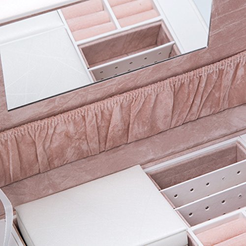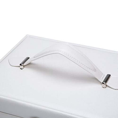 -. Feature : Made of quality white faux leather, this jewelry box is super excellent to protect your beloved jewelry from scratch and damage / Multifunctional jewelry case, suits for necklaces, bracelets, watches, earrings, ear studs, hairpins, cufflinks, brooches and other jewelry, nice gift idea / Excellent layout design, attractive appearance, simple structure and fine workmanship; Proper composition design to hold all kinds of jewelries, perfect jewelry organizer / Spacious room for storage different kinds of jewelries. It has enough room to keep your necklaces, bracelets, rings, earrings, watches and your other jewelries organized and neatly displayed. / Special design of automatic pull-out compartment for necklace hanging-on storage when opening the jewelry box. Just open the top lid, this necklace storage part will come out automatically at the same time.