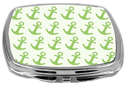 Rikki Knight Compact Mirror on Distressed Wood Design, Green Anchor, 3 Ounce