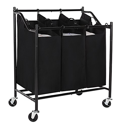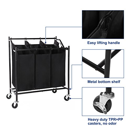 SONGMICS 3-Bag Rolling Laundry Sorter Cart Heavy-Duty Sorting Hamper W' Removable Bags & Brake Casters Black URLS70H