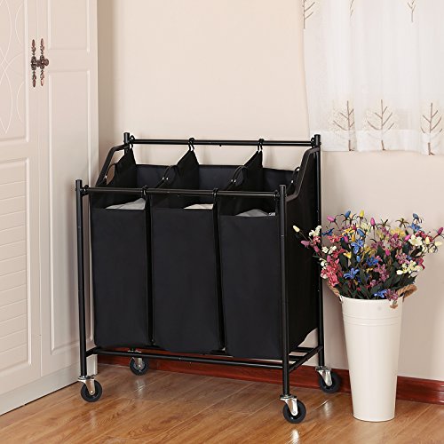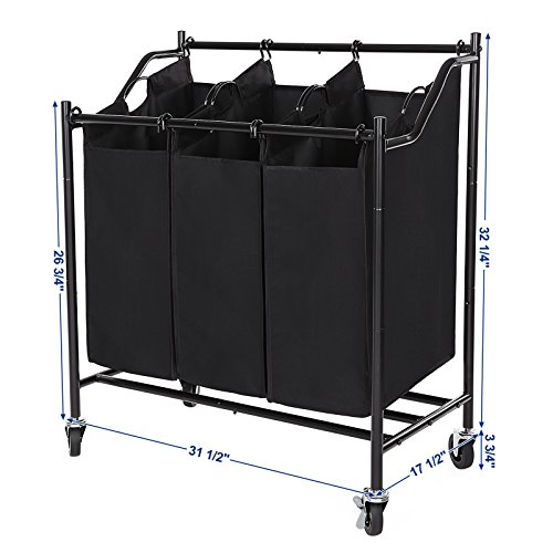 REMOVABLE LAUNDRY BAGS: 600D Polyester strong Bags with inner PVC coated, easy to maintain. 3 bags are separate allows you to mark each bag to help to sort your laundry well