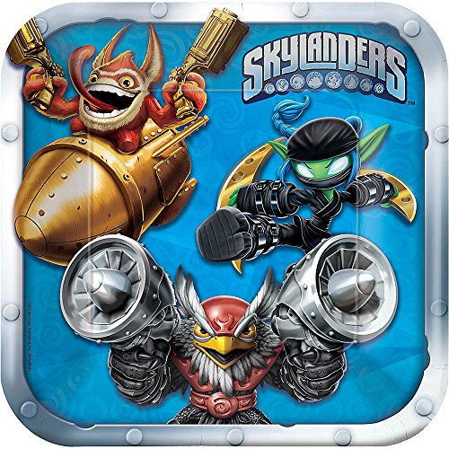 -. Binding : Toy -. Brand : American Greetings -. ClothingSize : 9" -. Color : Blue -. Department : party-supplies -. EAN : 0013051543860 -. Feature : 8 large party plates / Measures 9 in. x 9 in. / Made in the USA / Square lunch plates feature Skylanders characters Trigger Happy, Stealth Elf and Jet-Vac / Perfect American Greetings party supplies for a kid's birthday party or Skylanders-themed party -. IsAdultProduct : 0 -. Label : American Greetings- Toys -. Manufacturer : American Greetings- Toys -. Model : 5455573 -. MPN : 5455573 -. PackageQuantity : 1 -. PartNumber : 5455573 -. ProductGroup : Toy -. ProductTypeName : TOYS_AND_GAMES -. Publisher : American Greetings- Toys -. Size : 9" -. Studio : American Greetings- Toys -. Title : American Greetings Skylanders 9" Square Plate (8 Count) -. UPC : 013051543860 -. Warranty : No Warranty
