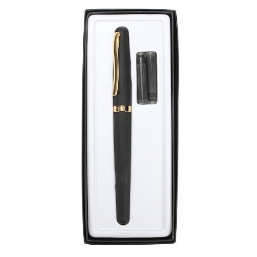 -. Feature : Length: 133mm / Nib: 22KGP M / Weight: 25G / Converter: Screw Type / Matte black barrel with gold trim, recyclable Material and classics of style,snap on cap, gold clip