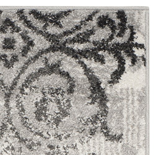 Studio : Safavieh Publisher : Safavieh Binding : Kitchen Product Description Featuring a dazzling design, this Safavieh Adirondack rug is inspired by global travel and the bold, colorful motifs adorning fashionable ski chalets. A soft floral theme in the backdrop gives this rug a delicate touch, while a dramatic antiqued ivory and silver design dominates the foreground. Its subtle washed effect gives the rug character and a playful yet sophisticated appearance.