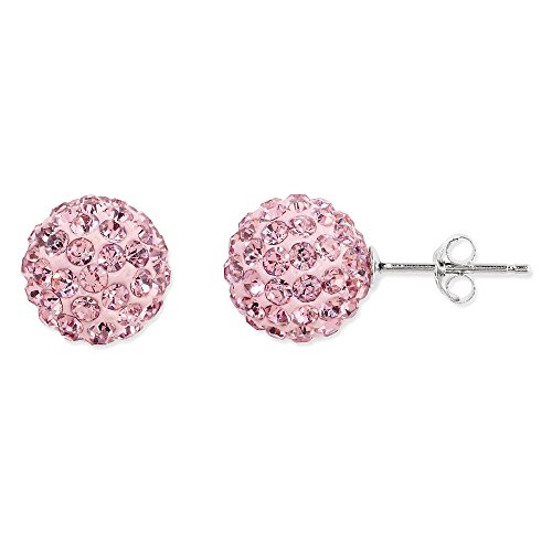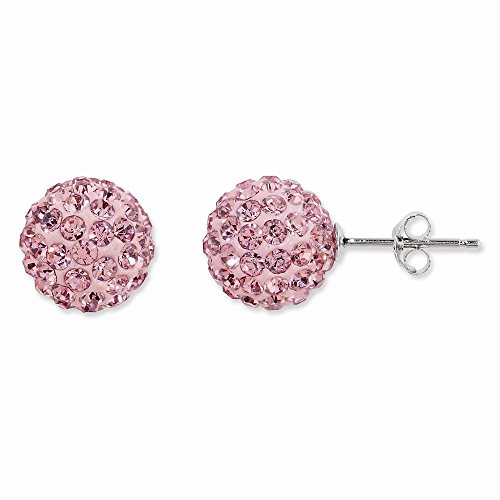 ICECARATS DESIGNER JEWELRY 925 STERLING SILVER 10MM PINK CZECH CRYSTAL POST STUD BALL BUTTON STUD EARRINGS