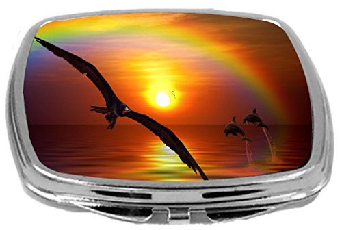Rikki Knight Compact Mirror, Dolphin In Sunset with Fantasy Bird