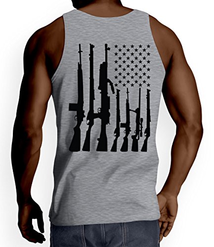 Mens Big Big American Flag With Machine Guns Tank Top T-shirt