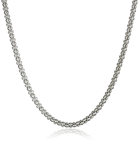 The Sterling Silver Italian Popcorn Chain Necklace delivers a refreshing look to a variety of styles. This chain encompasses the quality and sophistication of all Italian-made jewelry. Some of the designs and fine-craftsmanship practices seen in today’s fashionable chains are inspired by Egyptian, Greek and Asian culture, discovered centuries ago during the Etruscan period in Sothern Italy. Popcorn-style chains give the versatility of being worn with a variety of casual or elegant fashions. A beautiful pairing with classic or vintage pendants and solo to accentuate your refined style. Choose from a variety of chain thicknesses and lengths.