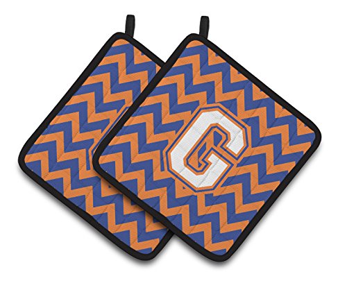 Caroline's Treasures Letter G Chevron Blue & Orange #3 Pair of Pot Holders CJ1060-GPTHD, 7.5HX7.5W, Multicolor