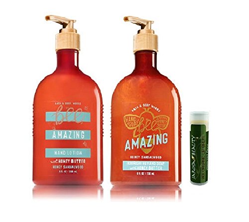 - YOU’LL RECEIVE 1 – Bee Amazing Bath & Body Works Honey Sandalwood Hand Lotion, 1 - Bee Amazing Bath & Body Works Honey Sandalwood Hand Soap & 1 – Jarosa Bee Organic Peppermint Lip Balm in your purchase.
