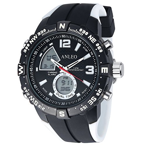 Anleowatch ANLEOWATCH 1PCS White Watch Mens Sport Watch Quartz Men Military Digital Display Wristwat