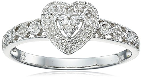 -. Binding : Jewelry -. Brand : Amazon Collection -. Department : womens -. Feature : White gold ring featuring heart-shape centerpiece and diamond accents framed in milgrain trim / All our diamond suppliers confirm that they comply with the Kimberley Process to ensure that their diamonds are conflict free. / Imported -. Label : Amazon Curated Collection -. Manufacturer : Amazon Curated Collection -. Model : B000Y1UB8Q-Parent -. ProductGroup : Jewelry -. ProductTypeName : FINERING -. Publisher : Amazon Curated Collection -. Studio : Amazon Curated Collection -. Title : 10k White Gold Diamond Heart Ring (0.04 cttw, I-J Color, I2-I3 Clarity)