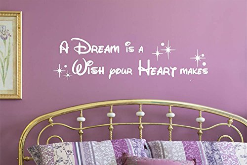 A Dream is a Wish Your Heart Makes - Vinyl Wall Art Decal for the Home or Bedroom Bathroom - Cinderella Disney Quote - 38" W x 10.5" H (White, Matte)