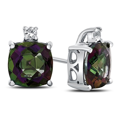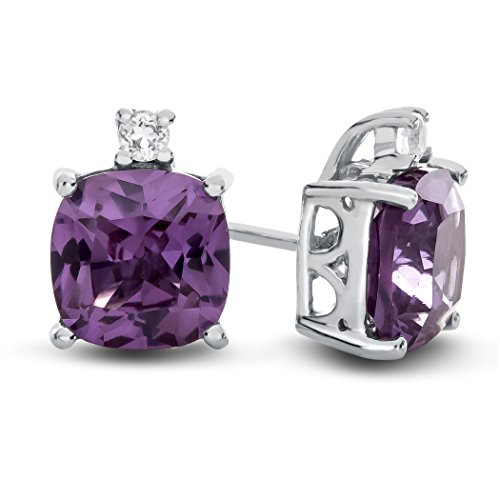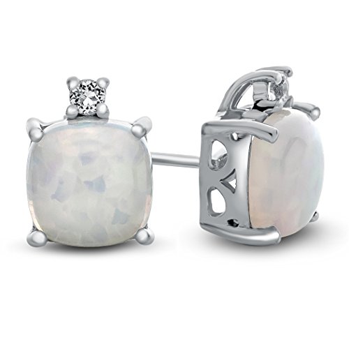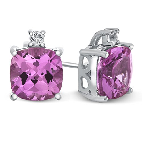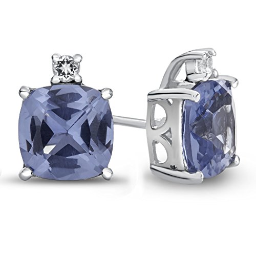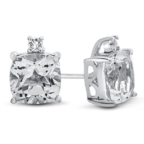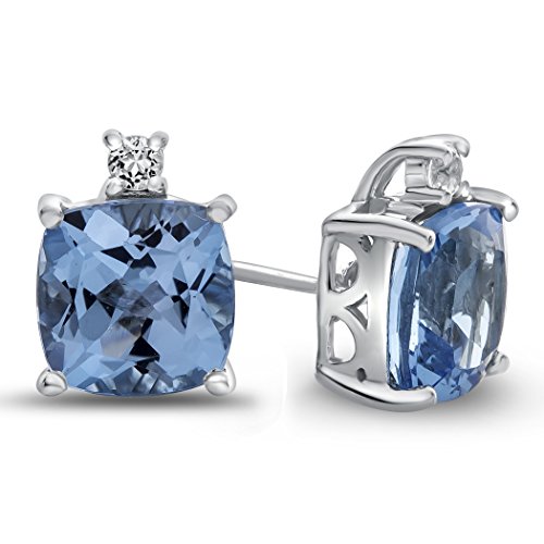 The impressive 10k White Gold 7mm Cushion Created Sapphire with White Topaz Earrings, crafted in 10 kt White Gold . This attractive design is set with 2 stones prong set dark blue Cushion Created Blue Sapphire eye clean clarity, 2 stones 0.080 carats total weight, prong set colorless Round White Topaz eye clean clarity. This design measures 7.00 mm wide, 9.00 mm long.Warranty: - This item is covered by our exclusive Silver Shield Lifetime Warranty. This exclusive lifetime coverage is offered ONLY by Finejewelers so please shop with confidence, our quality is guaranteed for life!Feature