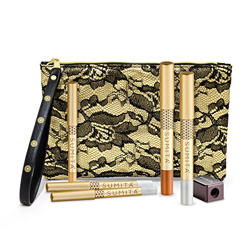 -. Feature : This holiday season, no night out is complete without this Eye Love the Holidays Gift Set. A coordinated kit for your eyes and brows, all in this stylish gold and black lace bag. / This limited holiday edition includes Sumita Cosmetics' Mini Eyeliner Pencils (3PACK)- Lights (White, Gold, & Silver), Eye Shimmer Stick- Bronze, Brow Highlighter, Single Sharpener, and Holiday Lace Bag. / A $108 retail value, only for $39 plus a Holiday Lace Bag.