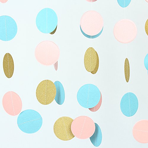-. Title : ZOOYOO Paper Circle Garland Dots Hanging Decor, Circle Event & Party Supplies,2'' high,9.8-feet(Gold Pink Sky blue,2pc)