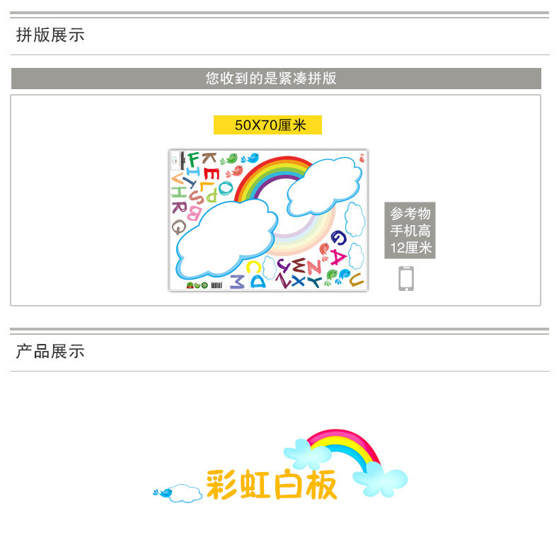 Sizes, "you receive the goods and typesetting" size and "collage after size reference"