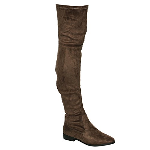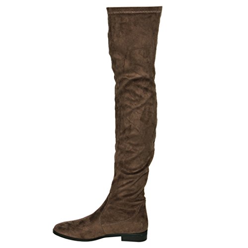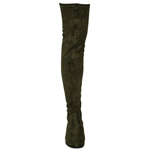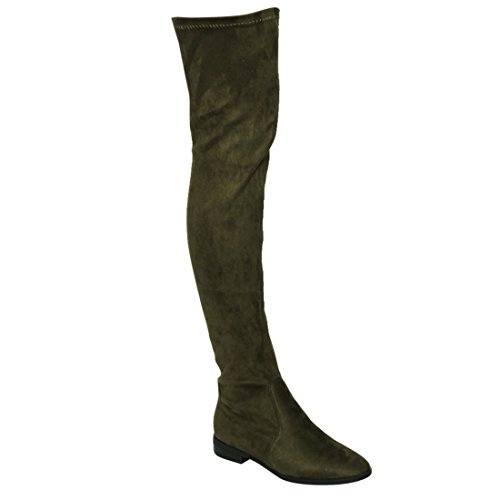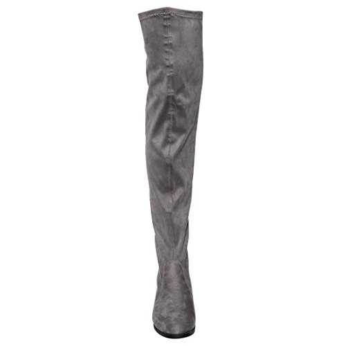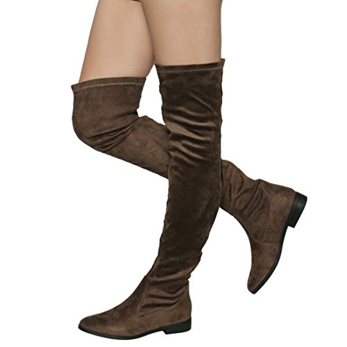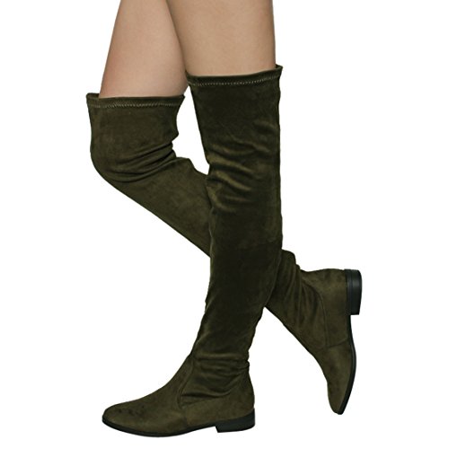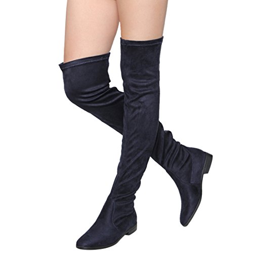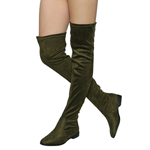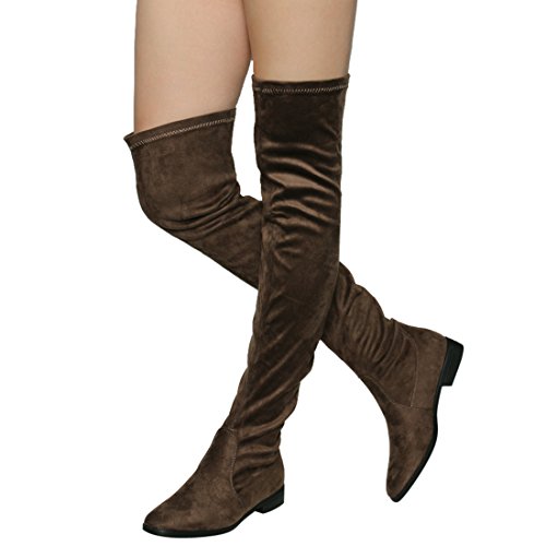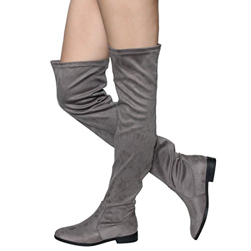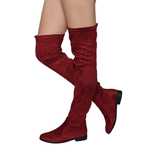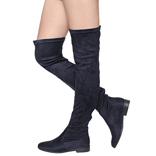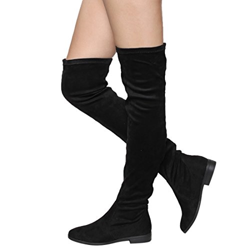 Binding : Apparel Product Description Enjoy a day off in the comfortable thigh high boots! These minimalist style boots feature vegan upper, low block heel, pull on design, over the knee length and lightly padded footbed. Pictures of shoes live shot are for the modeling purposes only and sometimes do not reflect the true color of the style, due to the lighting reasons. Refer to the stand alone shoes for your color selection. 0